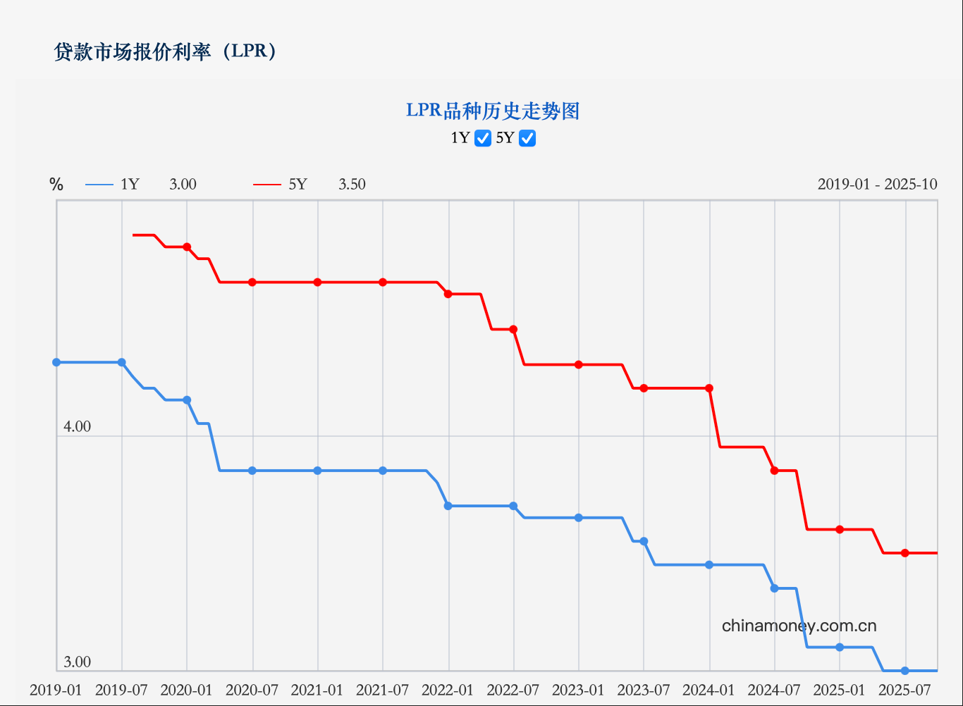 10月20日,中國人民銀行授權(quán)全國銀行間同業(yè)拆借中心公布,2025年10月20日貸款市場報(bào)價(jià)利率(LPR)為:1年期LPR為3.0%,5年期以上LPR為3.5%。兩個期限品種LPR較上月均維持不變。
