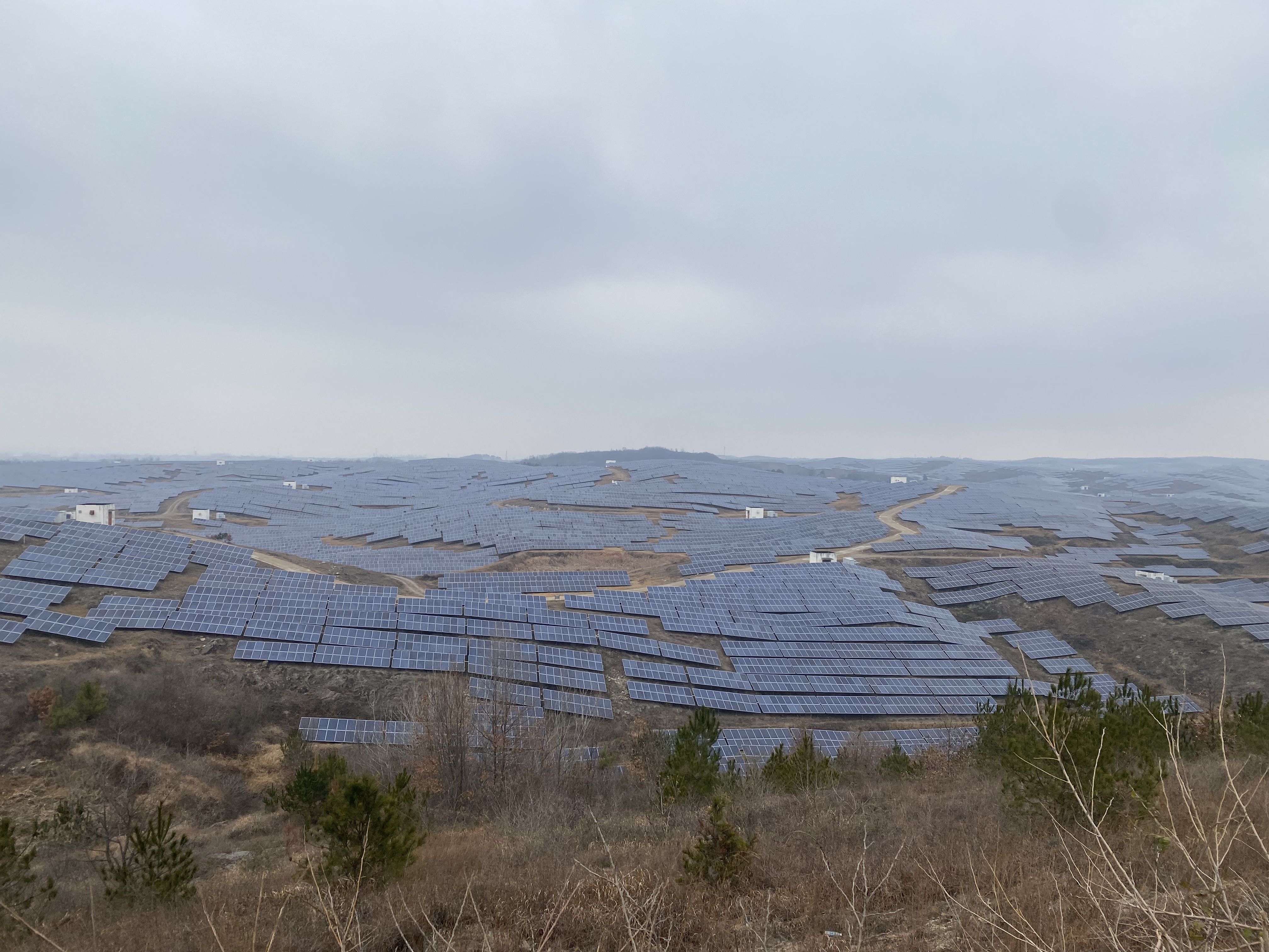在湖北省隨州市高新區(qū)淅河鎮(zhèn),馬鞍山上的枯草剛從嚴(yán)冬中“蘇醒”過(guò)來(lái),漫山遍野的光伏組件似鎧甲一般覆蓋在山坡之上,閃閃發(fā)光,將原本只有點(diǎn)點(diǎn)新綠的山坡裝飾得科技感十足。