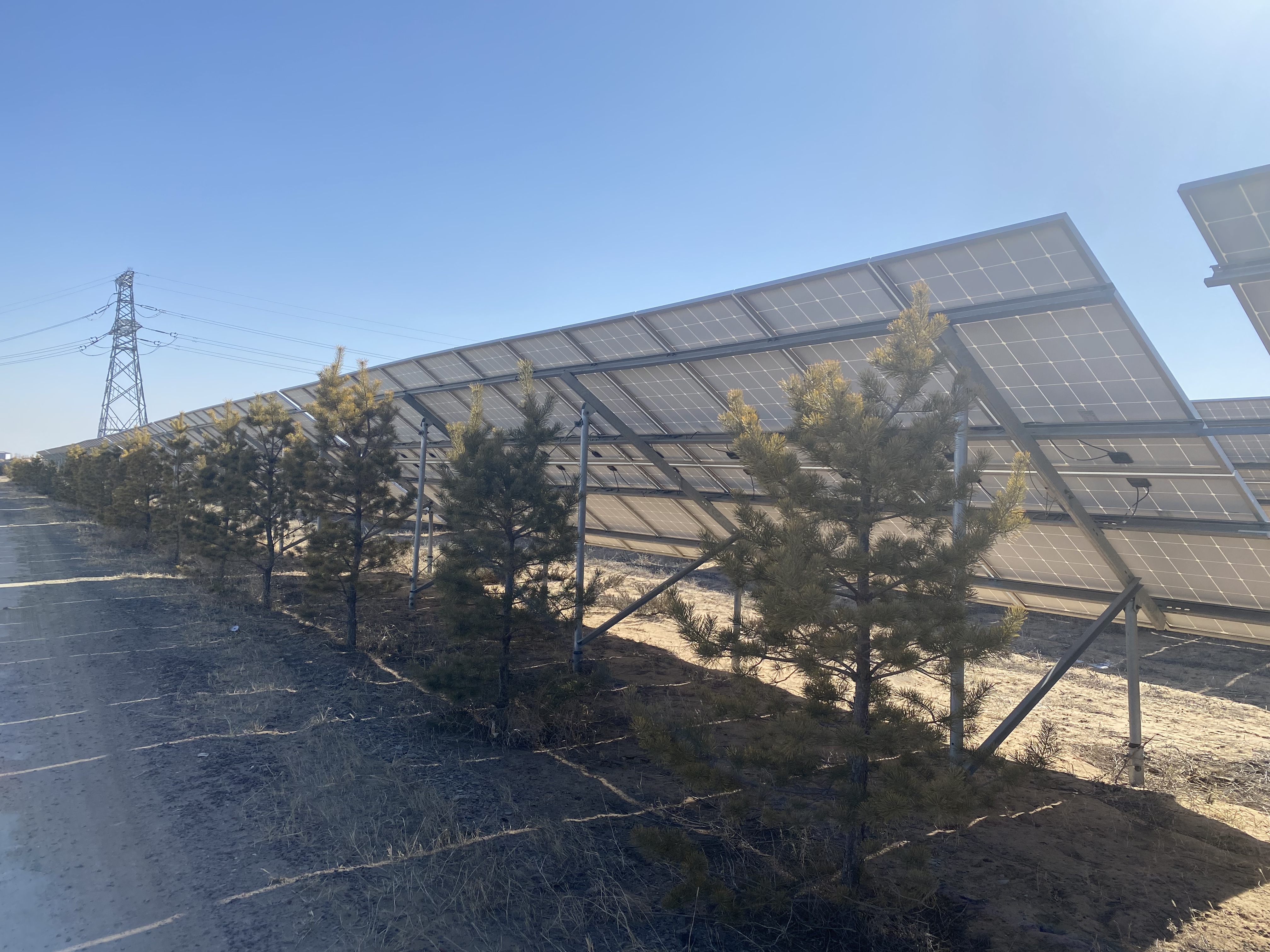 站在榆林光伏項(xiàng)目綜合樓屋頂放眼望去,數(shù)百萬(wàn)塊深藍(lán)色光伏組件整齊排列、一望無(wú)垠,在陽(yáng)光普照下熠熠生輝,源源不竭地把太陽(yáng)光照轉(zhuǎn)換為潔凈電力,為經(jīng)濟(jì)發(fā)展注入澎湃動(dòng)力。同時(shí),“一肩雙挑”的光伏組件還和逾200萬(wàn)株的樟子松、沙地柏等極具西部特色的綠色植被一起構(gòu)成“林光互補(bǔ)”,為陜西省“綠色版圖”的擴(kuò)大貢獻(xiàn)力量。