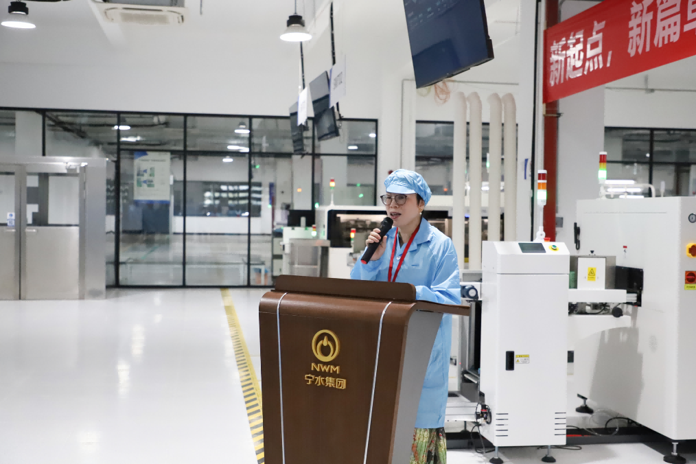 隨后,寧水集團(tuán)總裁陳翔發(fā)表講話(huà)。陳翔總明確了車(chē)間運(yùn)營(yíng)的“三大核心準(zhǔn)則”:以“品質(zhì)是尊嚴(yán)”為底線(xiàn),建立嚴(yán)苛品控體系,確保“零缺陷”生產(chǎn);以“效率是生命”為目標(biāo),優(yōu)化生產(chǎn)流程、打通信息流與物料流,打造市場(chǎng)“快速反應(yīng)部隊(duì)”;以“團(tuán)隊(duì)是基石”為根本,強(qiáng)化技能培訓(xùn)與技術(shù)革新,培育智能制造專(zhuān)業(yè)人才。“我們要把圖紙上的產(chǎn)能變?yōu)楝F(xiàn)實(shí)中的產(chǎn)值,讓電子模塊車(chē)間成為公司的驕傲、行業(yè)的標(biāo)桿!”陳翔總的發(fā)言為車(chē)間運(yùn)營(yíng)指明方向,也增強(qiáng)了在場(chǎng)客戶(hù)代表對(duì)寧水集團(tuán)交付能力與產(chǎn)品品質(zhì)的信心。