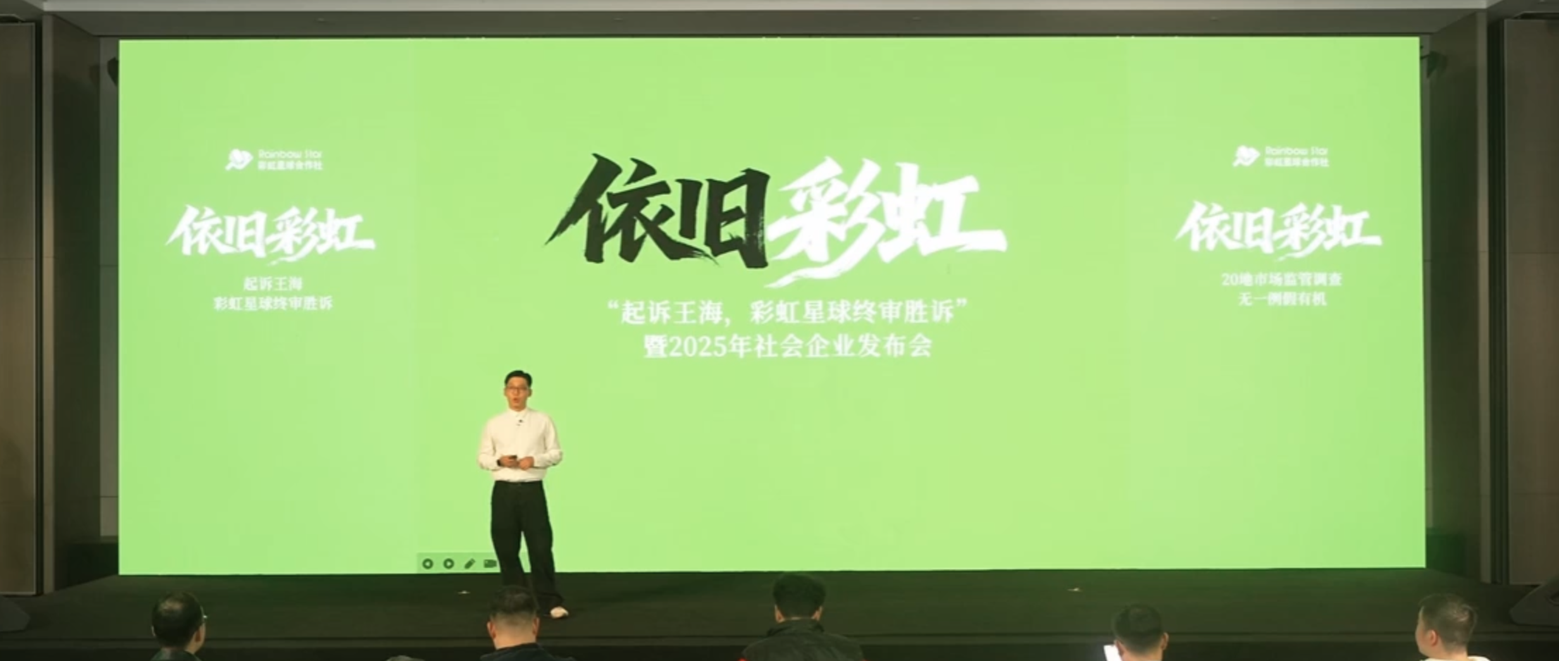 本報(bào)訊 (記者梁傲男)10月28日,“依舊彩虹——終審勝訴暨2025社會企業(yè)發(fā)布會”在西安召開。現(xiàn)場,彩虹星球文化科技有限公司(以下簡稱“彩虹星球”)創(chuàng)始人王來庫宣布,該公司與王海的名譽(yù)侵權(quán)案終審落定,法院維持一審對王海侵權(quán)責(zé)任的全部判定。