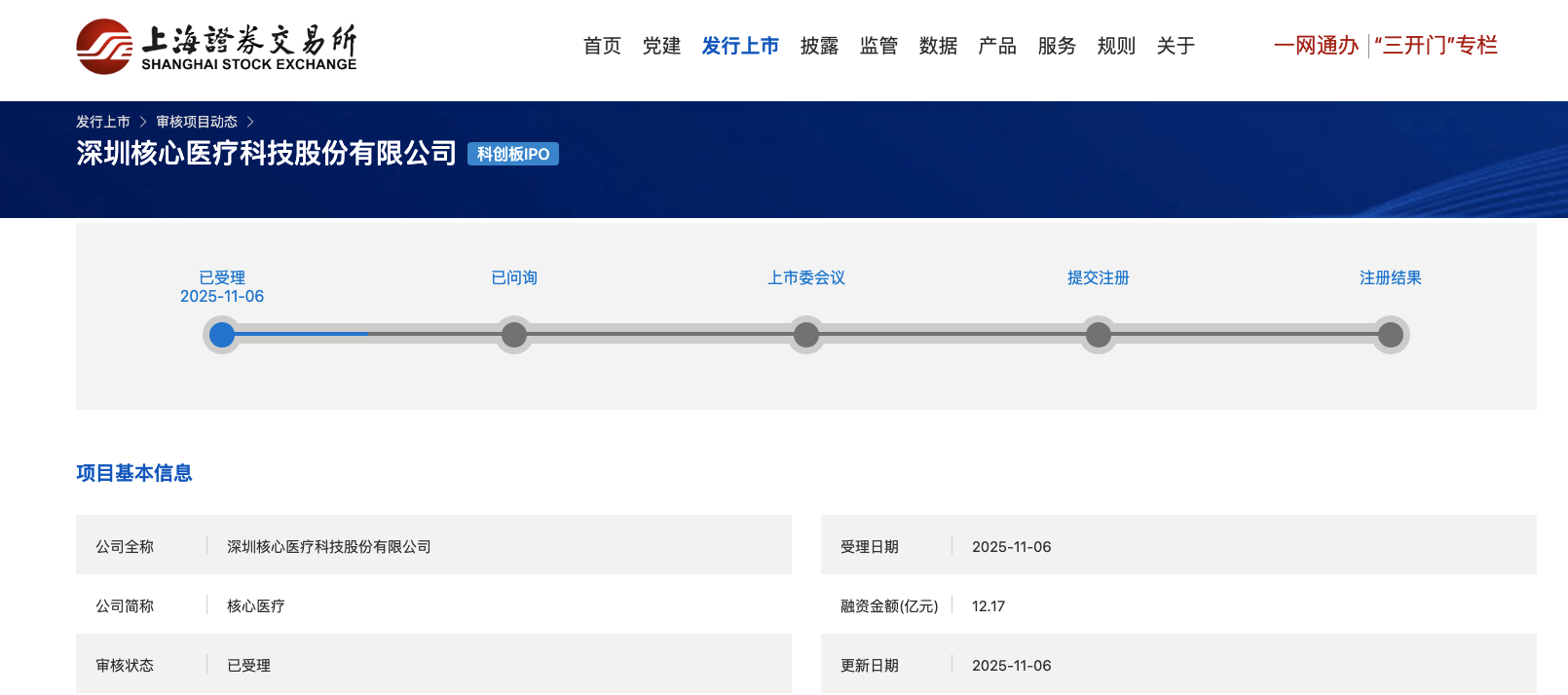本報(bào)訊 (記者毛藝融)11月6日,深圳核心醫(yī)療科技股份有限公司(以下簡(jiǎn)稱“核心醫(yī)療”)科創(chuàng)板IPO申請(qǐng)獲上交所受理,成為重啟科創(chuàng)板第五套上市標(biāo)準(zhǔn)后,首家成功獲受理的創(chuàng)新醫(yī)療器械公司。