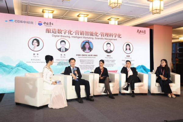 充滿創(chuàng)意的機器人舞蹈表演《醞》,讓現(xiàn)場嘉賓于靈動的舞姿里真切感受酒業(yè)在數(shù)字時代的活力與魅力,也在科技與藝術(shù)的碰撞中開啟了“釀造數(shù)字化·營銷智能化·管理科學(xué)化”主題對話環(huán)節(jié)。新華社中國經(jīng)濟信息社副總裁石為,墨西哥龍舌蘭商會負(fù)責(zé)人、墨西哥HaciendadeOro龍舌蘭企業(yè)首席執(zhí)行官伊蓮娜·伊麗莎白·帕爾蒂·里維拉,壹玖壹玖酒類平臺科技股份有限公司創(chuàng)始人、董事長楊陵江,珠海格力電器股份有限公司戰(zhàn)略客戶部部長宋美蓉圍繞酒業(yè)數(shù)字化轉(zhuǎn)型進行了思想的交流與碰撞,以多維度的見解為酒業(yè)數(shù)字化轉(zhuǎn)型打開了新的視角。