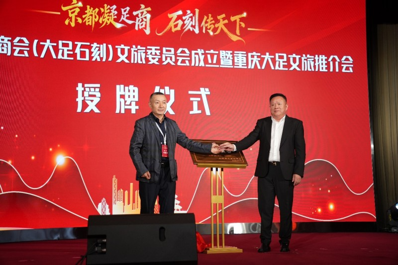 活動(dòng)現(xiàn)場,北京重慶企業(yè)商會(huì)為大足石刻文旅委員會(huì)正式授牌,推薦環(huán)節(jié)由大足區(qū)委常委、常務(wù)副區(qū)長雷科作專題推介。