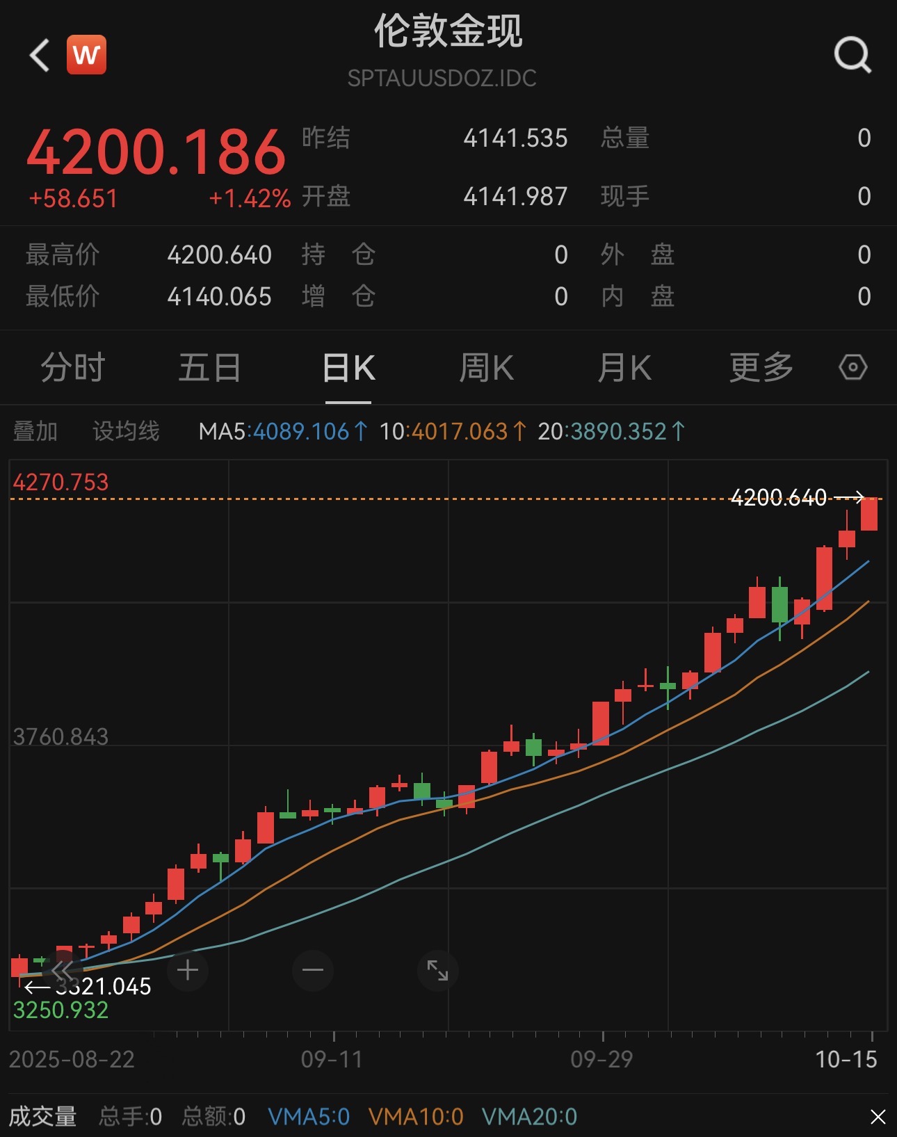 10月15日,國際現(xiàn)貨黃金價格持續(xù)走強。Wind數(shù)據(jù)顯示,倫敦金現(xiàn)貨價格歷史首次突破4200美元/盎司關(guān)口,日內(nèi)漲超1.4%。