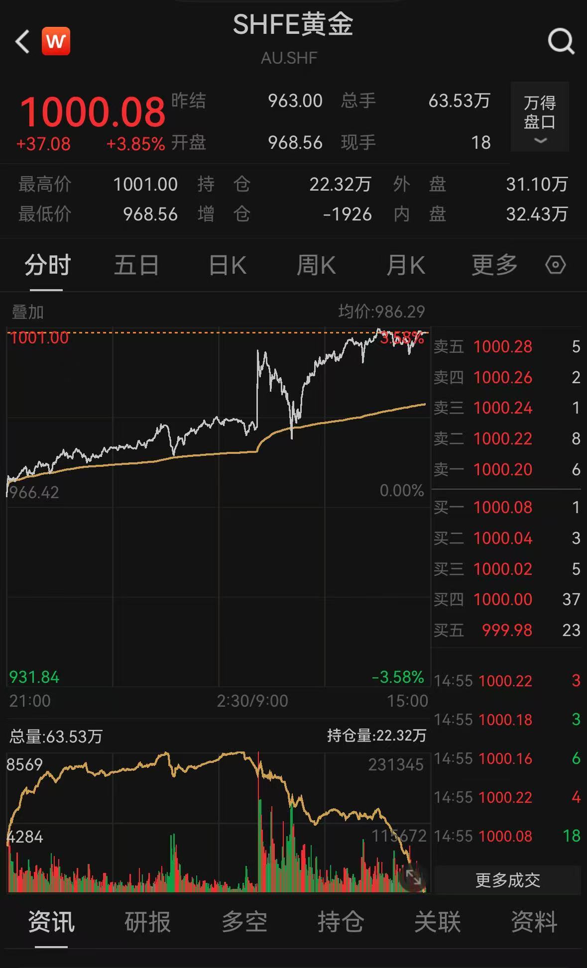 北京時(shí)間10月17日午后,SHFE黃金漲幅擴(kuò)大,盤中價(jià)格一度突破1000元/克整數(shù)關(guān)口,年內(nèi)漲幅逼近60%,與國(guó)際金價(jià)漲幅差距縮窄。