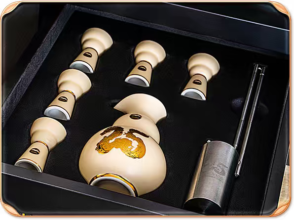 茅臺王子酒(25周年紀(jì)念)配備了設(shè)計精美的酒具。這些酒具以匠心打造,其中葫蘆分酒器,同時也是茶具中的公道杯,酒或茶倒出來之時,寓意著“福到了”;乾坤杯,正放為茶杯(象征“坤”,地之沉穩(wěn)),倒置為酒杯(象征“乾”,天之靈動),一器雙用,體現(xiàn)“陰陽相生”的哲學(xué)思想。品茗靜心、把酒言歡,皆能隨心切換,在器皿流轉(zhuǎn)間,感受傳統(tǒng)哲學(xué)和東方美學(xué)的當(dāng)代意境。