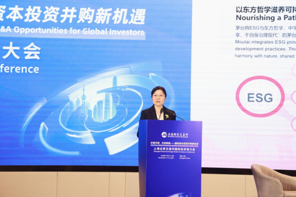 茅臺集團(tuán)黨委副書記、總經(jīng)理,茅臺酒股份公司黨委副書記、董事、代總經(jīng)理王莉受邀出席大會,并以《全球視野下的茅臺ESG實(shí)踐》為題在大會分論壇上作分享。茅臺集團(tuán)黨委委員、副總經(jīng)理涂華彬參加。