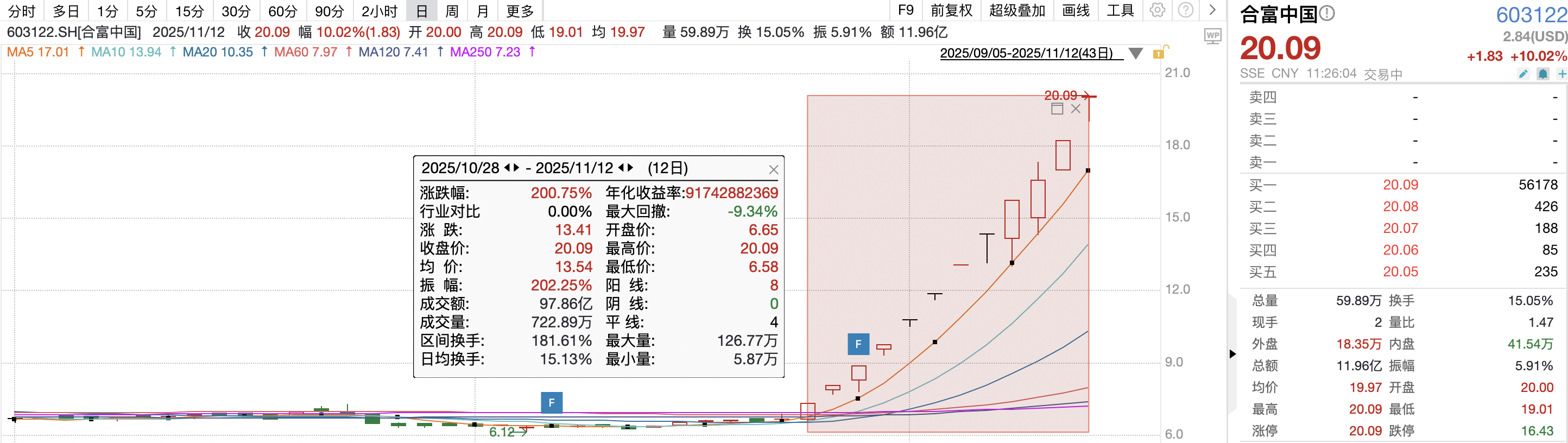 在業(yè)績(jī)持續(xù)虧損的情況下,合富中國(guó)(603122.SH)卻走出了“12天11板”行情。