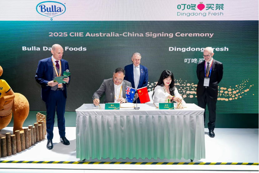 11月6日,叮咚買菜與澳洲知名乳制品品牌Bulla在進博會上簽訂了直采協(xié)議,約定將于明年采購至少500萬元的乳制品商品,簽約現(xiàn)場由澳大利亞貿易和旅游部長、參議員唐方睿見證。