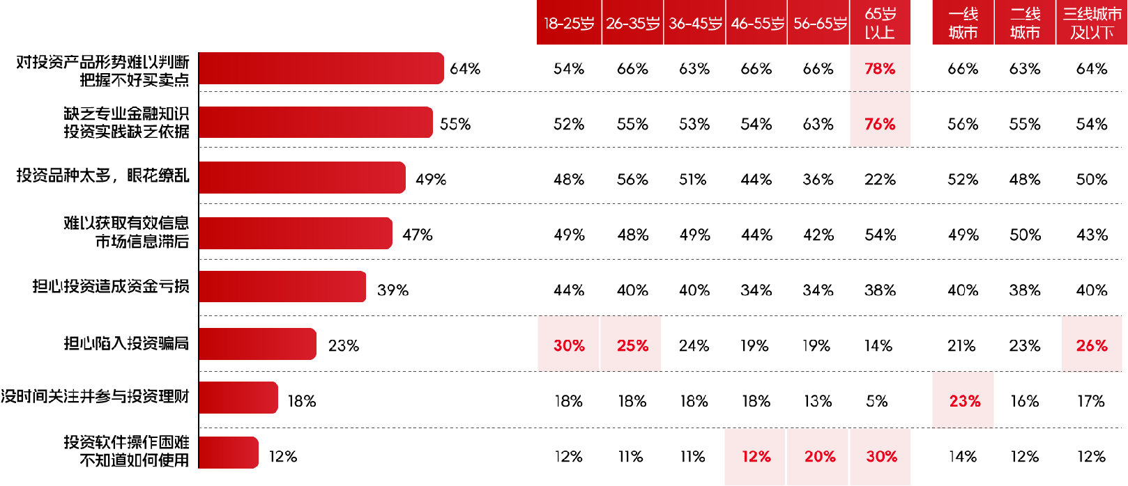 不同個(gè)人投資者在投資過程中的困擾(資料來(lái)源:中央財(cái)經(jīng)大學(xué)中國(guó)財(cái)富管理中心)